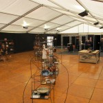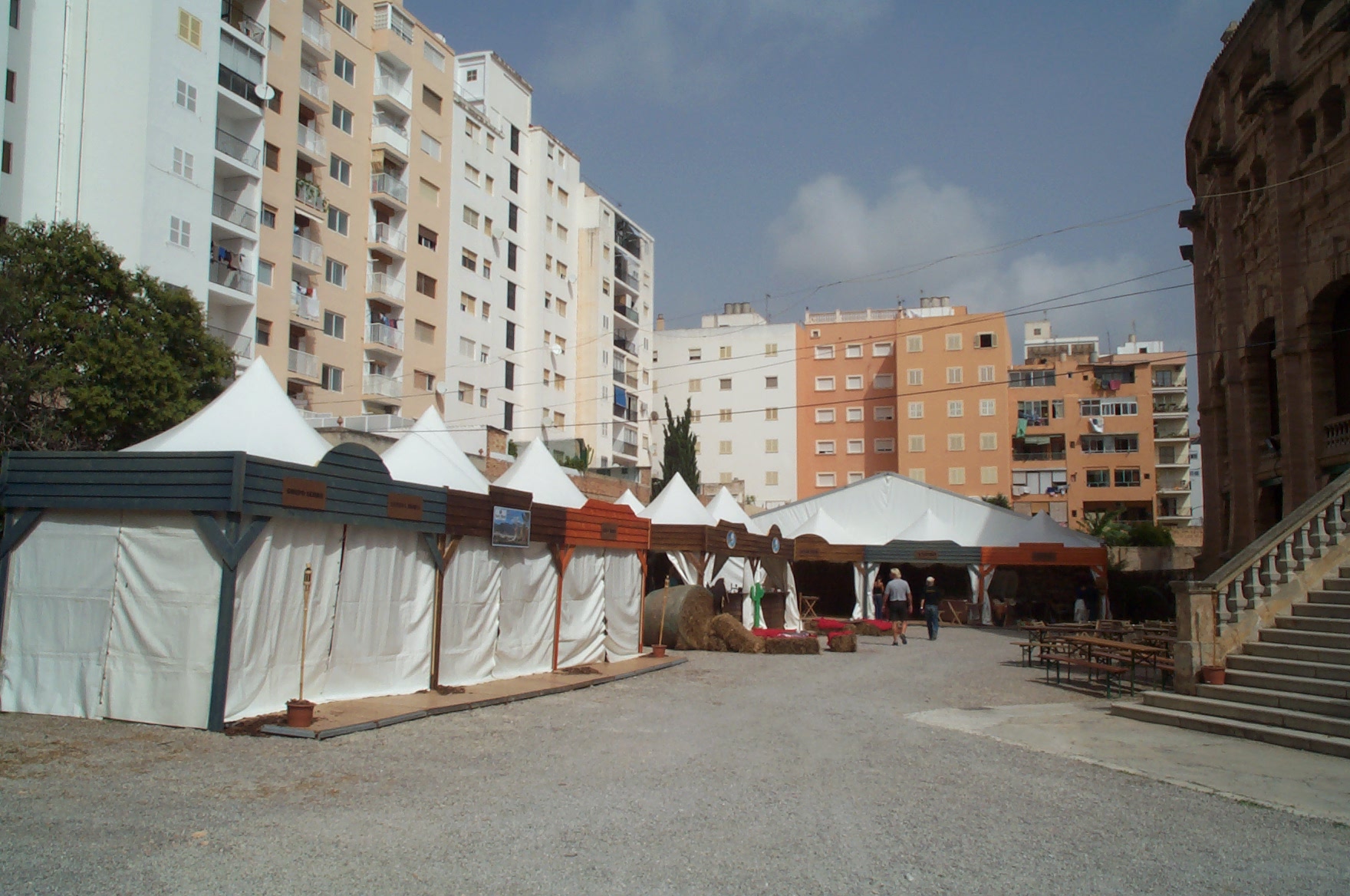 Las carpas curvas incluyen el suelo de tarima de madera sobre estructura reticular metálica de 1×1 mts. El acabado puede ser en madera vista, barnizada para enmoquetar. En montajes especiales, puede sustituirse con decoración e iluminación espectacular.