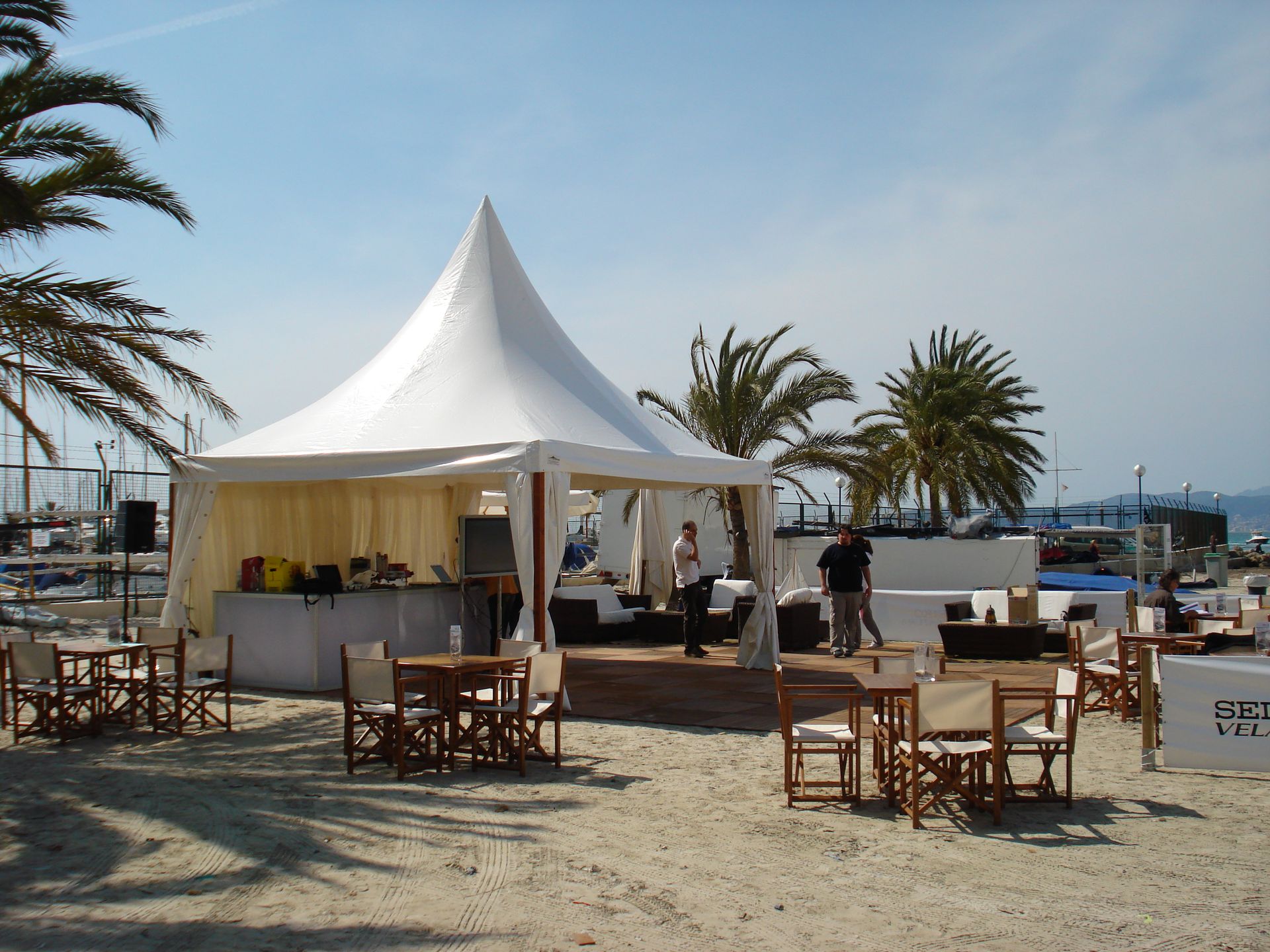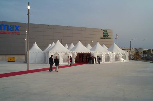 Las carpas Jaima, tambien conocidas como “carpas cucurucho”, son las más prácticas ya que son adosables entre sí. Las medidas básicas son : 4 x 3, 4 x 4 – 5 x 4 – 5 x 5 – 10 x 10 mts. con posibilidad de suministrar otras medidas bajo pedido.